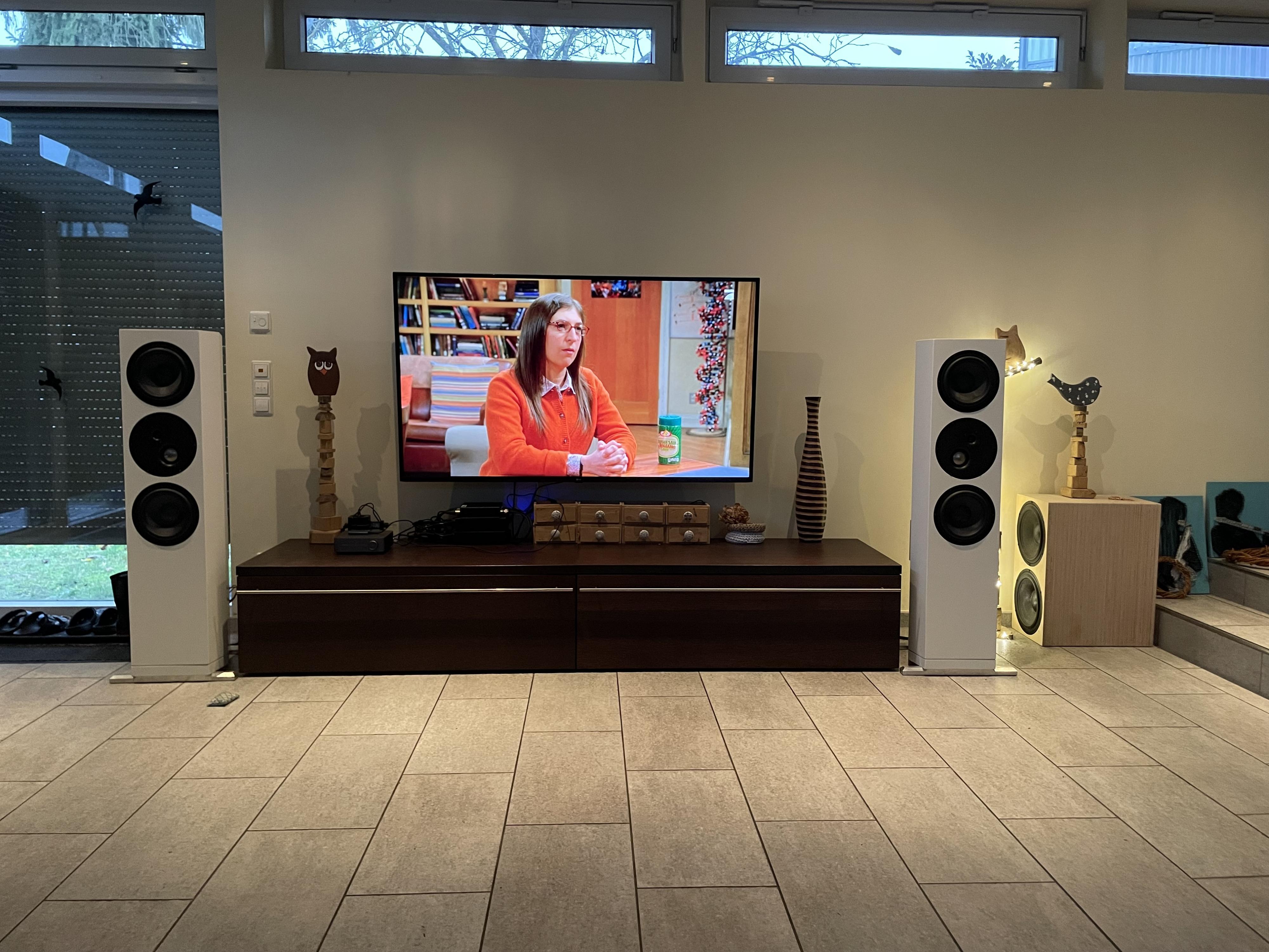 Insgesamt ist das Klangbild sehr klar und detailreich. So wie mir das bei Musik sehr gut gefällt, ... wo ich noch am hadern bin, ist, dass ich diese extreme Durchhörbarkeit beim TV eigentlich nicht so gerne habe. Das strengt mein Gehör sehr an, ... und ich werde dabei sehr unruhig. Ich versuche ein Beispiel zu machen, bei einem Krimi wird ein Tatort besichtigt und im Hintergrund spielen Kinder, es gibt Vogelgezwitscher und eine Unterhaltung der Personen. Die Vögel und die Kinder werden mir zu sehr im Feinen wiedergegeben, dass man jede Unterhaltung im Hintergrund noch wahrnimmt, und das strengt mich sehr an. Speziell bei den Produktionen, die wir gerne schauen "Morden im Norden" oder "Soko" oder "Wapo", sind toll gemachte Filme in Bezug auf die Akustik. Ich werde noch eine Weile zuhören, vielleicht gewöhne ich mich, und es ist dann nicht mehr so anstrengend.