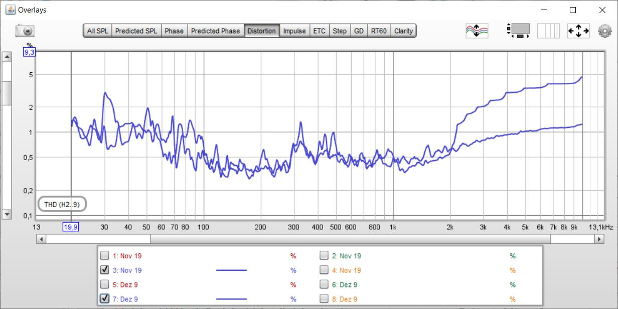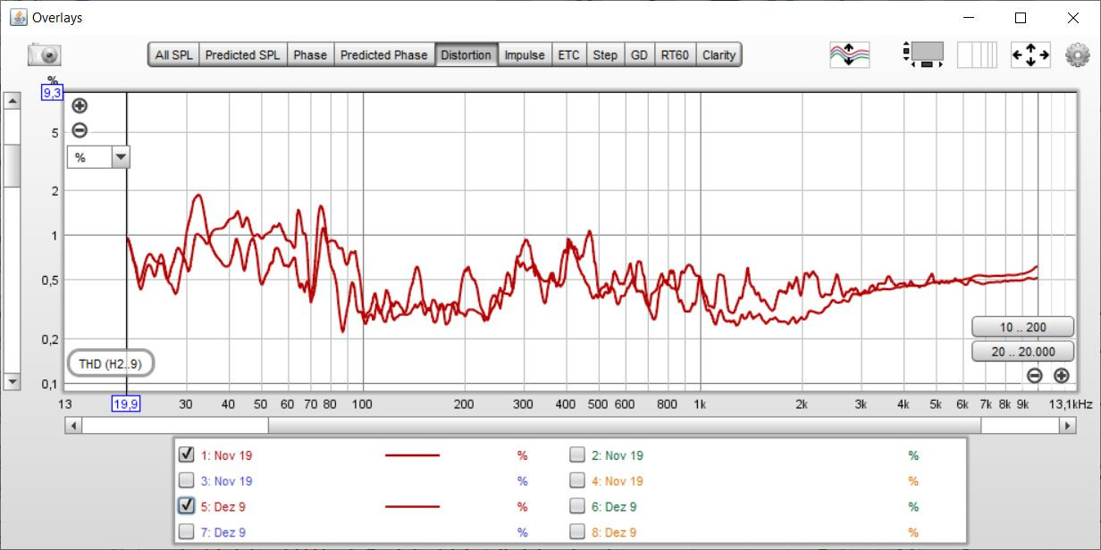 Klirr unterschiede habe ich auch bei Messungen festgestellt wenn ich den Hochtöner weiter vor oder zurück gestellt habe. (ESS AMT + GF200).