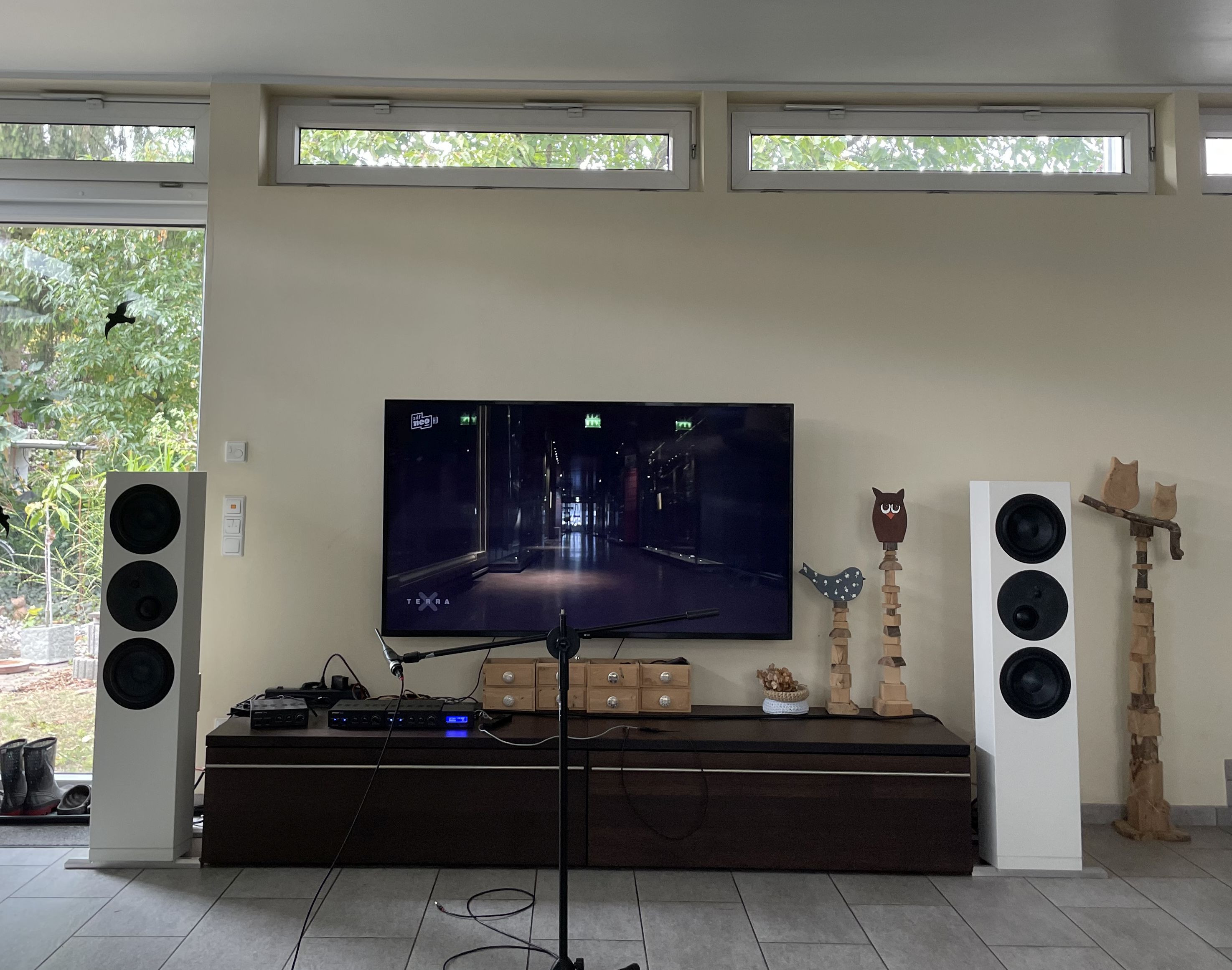 die Abstimmung habe ich mittels Messtechnik im Feinen durchgeführt; in der Metermessung und am Hörplatz, ... jetzt ist mir in den letzten paar TV-Tagen aufgefallen, dass der Bass und der Grundton zu sehr auftragen, ... die 5 dB im Tiefbass sind wohl zu massiv, da gehe ich nochmals ran.