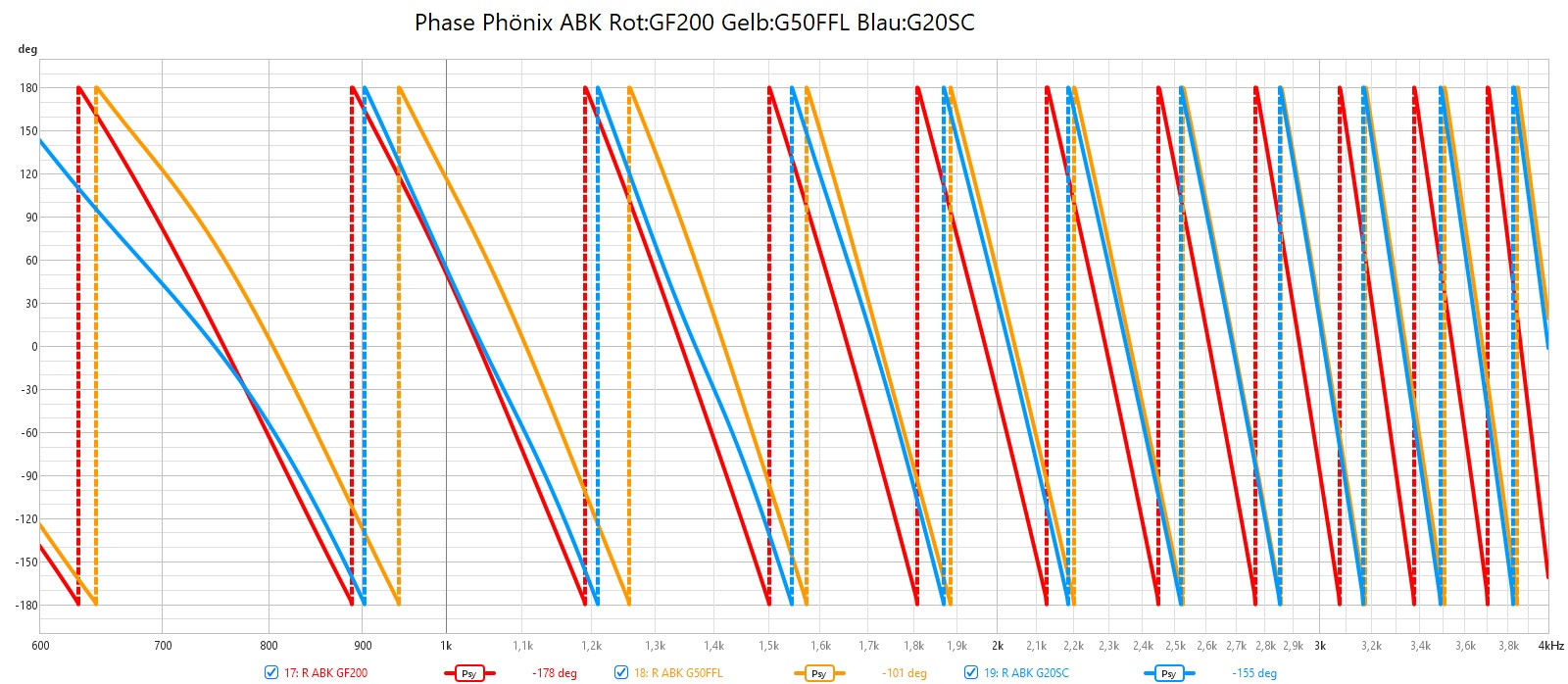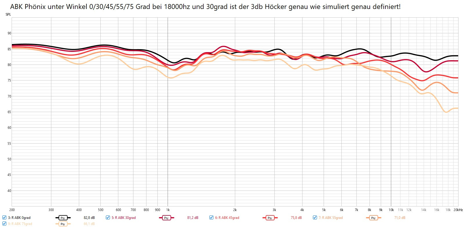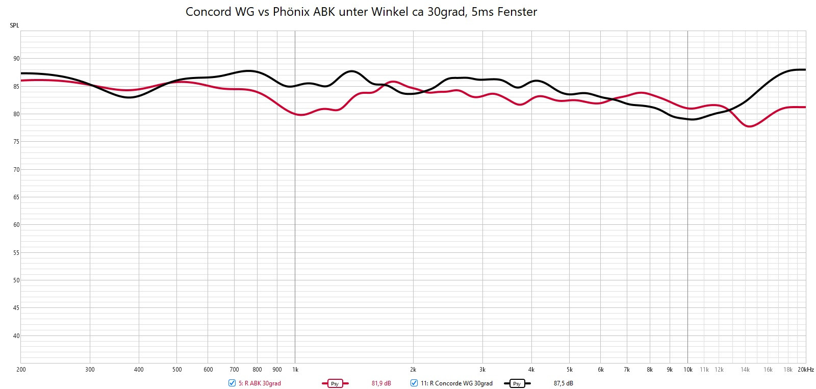 Beide unter ~30grad Winkel. Die Concorde bleibt bis 6khz linear und bricht dann im HT leicht ein . Der Gf200 wird auch etwas leiser da er schon minimal bündelt. Die Winkelmessung ist leider etwas wage. Ich habe hierzu das Mikrofon umpositionieren müssen.