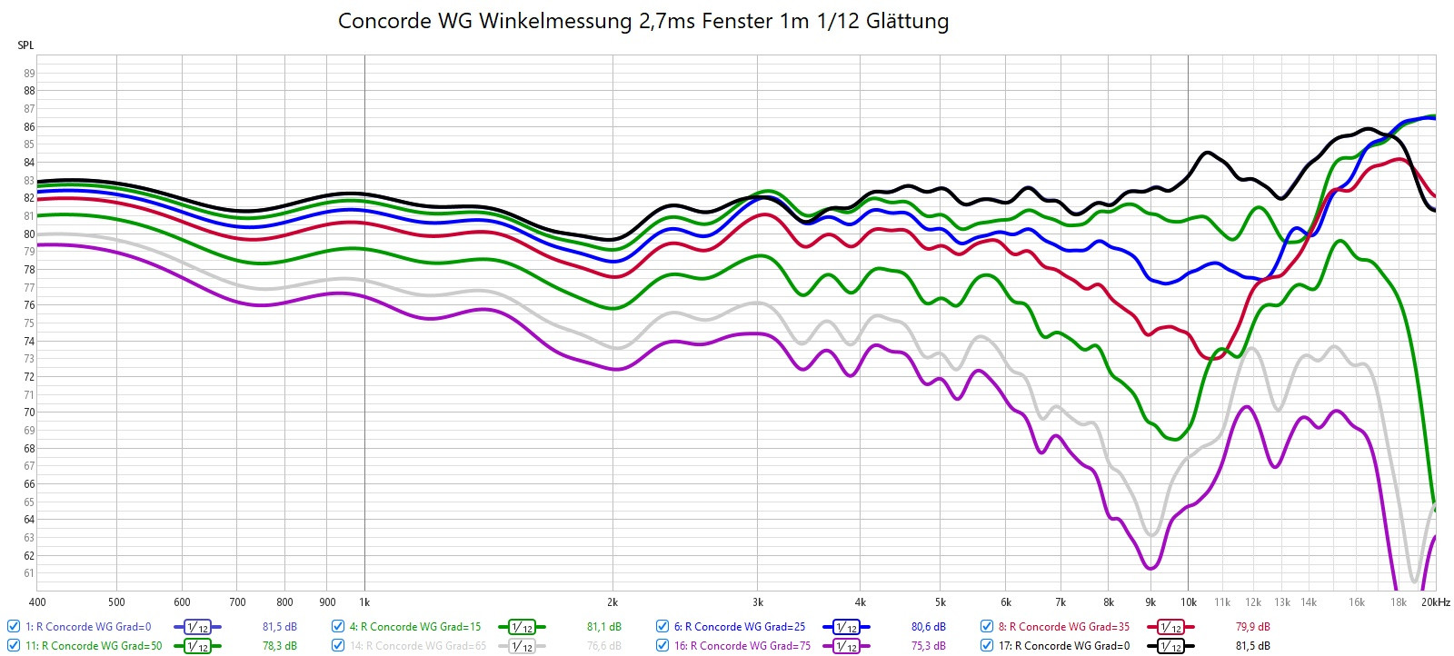 Kaputt nicht, ist aber schon ein wildes durcheinander der Winkel-Frequenzgänge. So sollte es nicht sein. Könnte aber an der "exotischen " Schallwand liegen. Dann wäre auch das Original so .