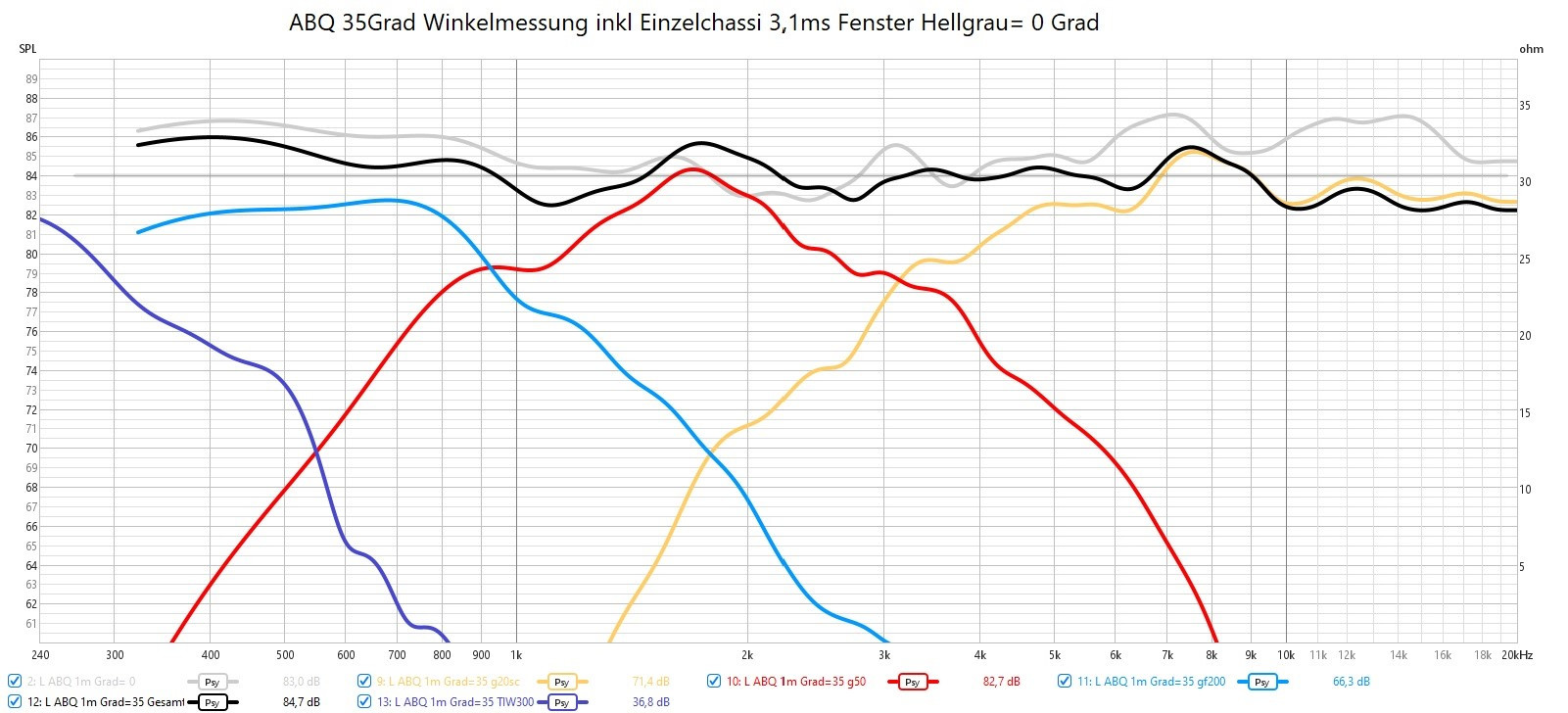 auch wenn man auf Achse hört, man nimmt auch alles mit, was unter Winkel passiert mit allen Reflexionen. Wenn unter Winkel was nicht stimmt, hört man das, man nimmt eher den Energiefrequenzgang wahr. Ich persönlich sehe die Winkelfrequenzgänge wichtiger an als auf Achse.