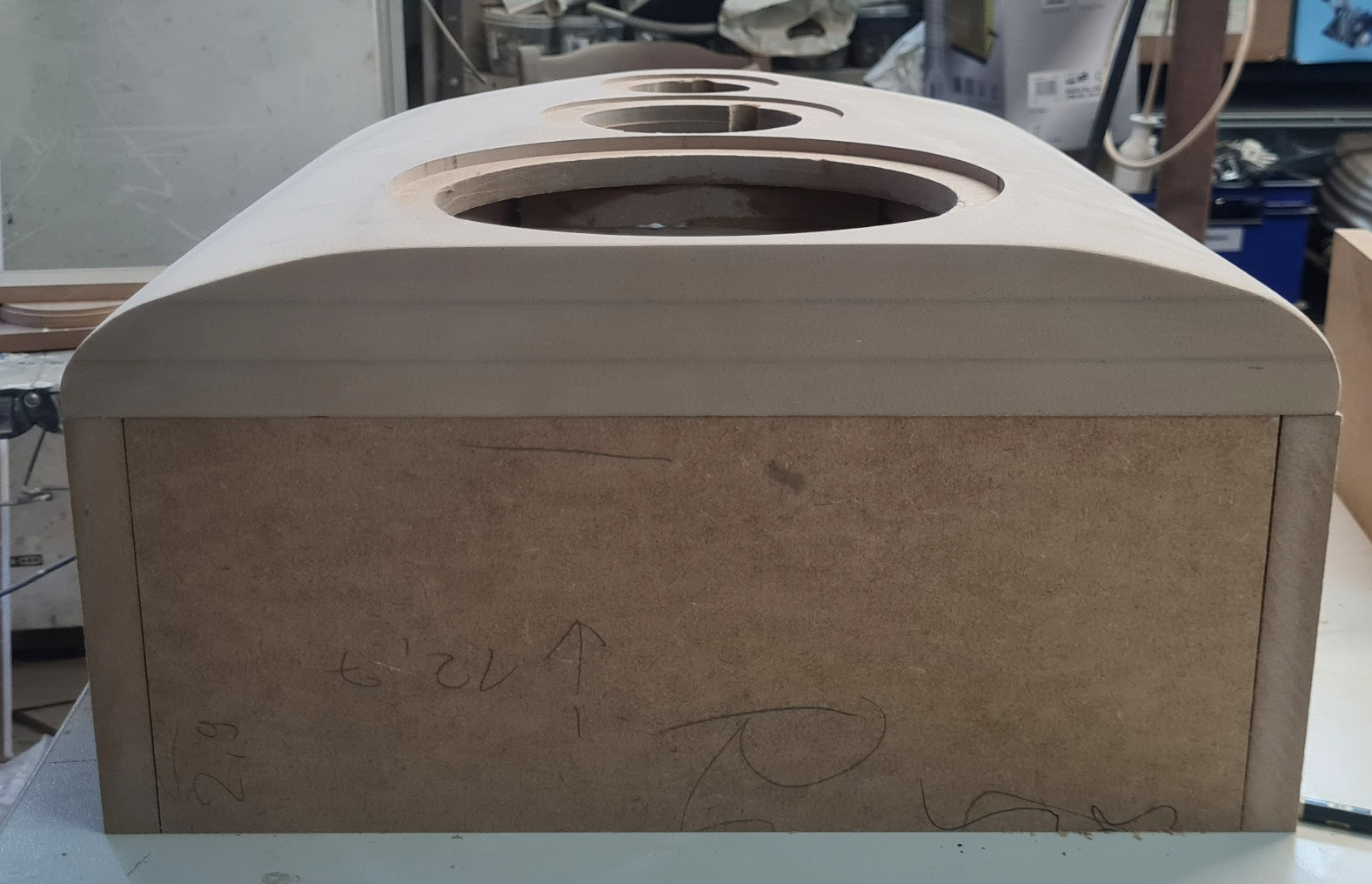 Das könnte man eventuell fließend von den Chassis über die Gehäusebreite auf 6cm Fasentiefe steigern. Pegelreserven sind ja auch noch vorhanden.