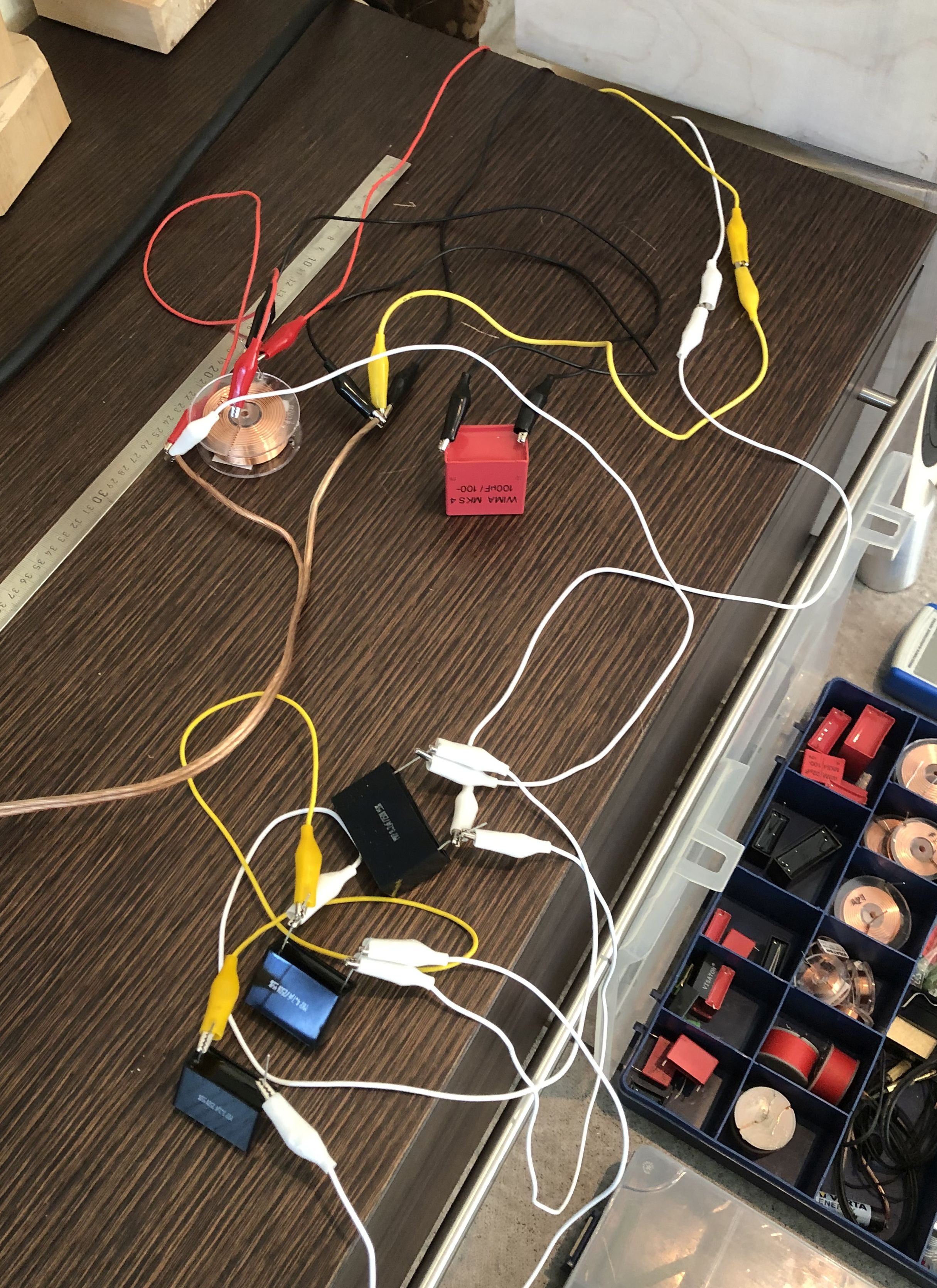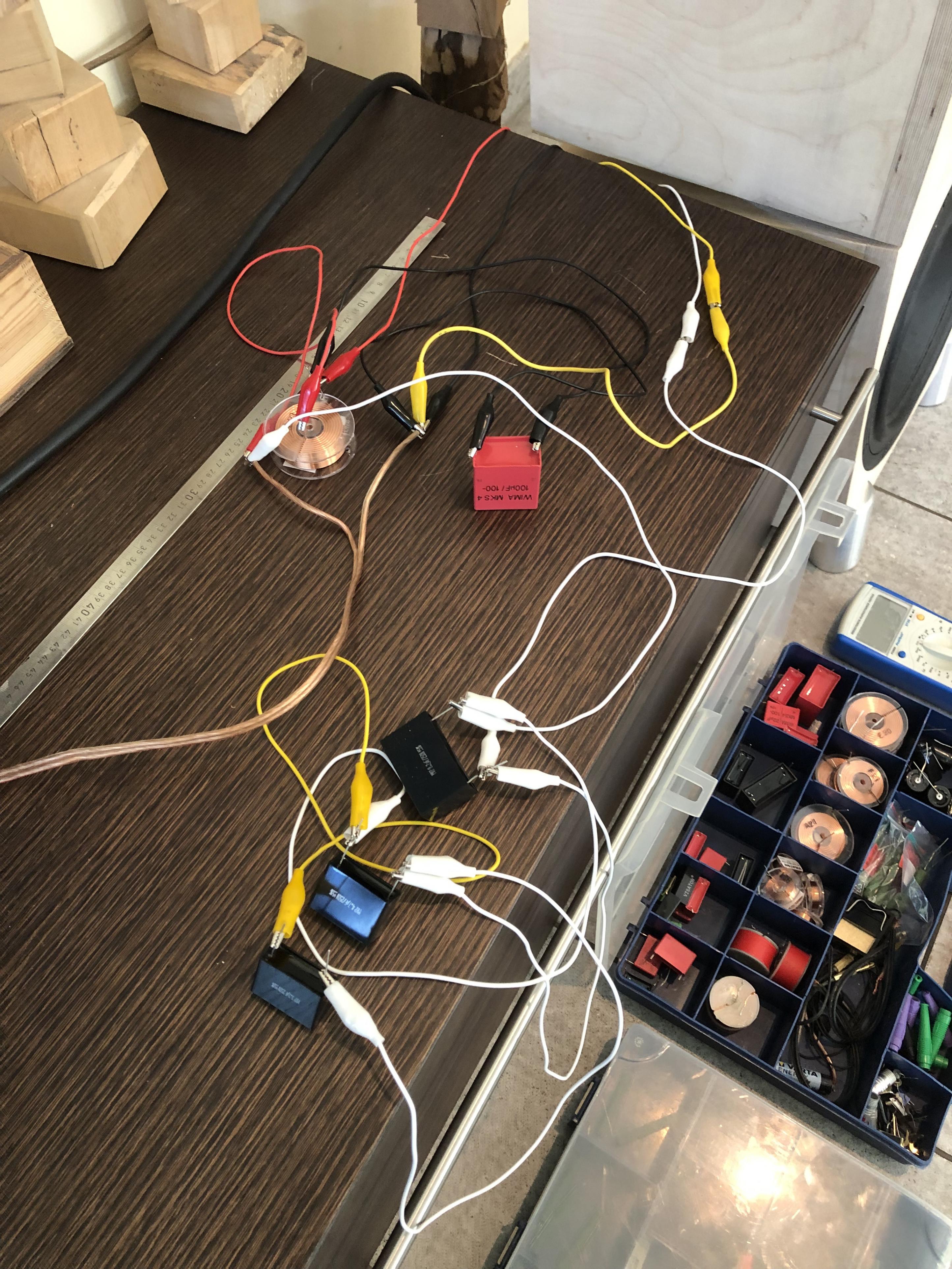 Hier im Schreihals passt das nicht ganz und ich bin per Messung auf 1mH und 100µF gekommen, ... die 5,6mH Spule (der 2,5 Weiche) habe ich erstmal überbrückt und spielt aktuell nicht mit, also aktuell spielt eine 2 Wegeweiche, ... im AMT habe ich gleich gesehen, dass der Kennschalldruck im Übergang garnicht weit weg ist von dem was ich mit den beiden Bässen und der Weiche habe, ... ich fing mit 22 µF und einem Kondensator an, das sah schonmal garnicht schlecht aus, mit leichter Überhöhung an der Trennung, somit etwas kleiner, bei um um die 16µF siehts gut aus. ich habe halt das genommen was ich hatte 8,2 plus 4,7 plus 3,3, ergibt bei mir 16,2µF. Eine weitere Spule wird nicht gebraucht.