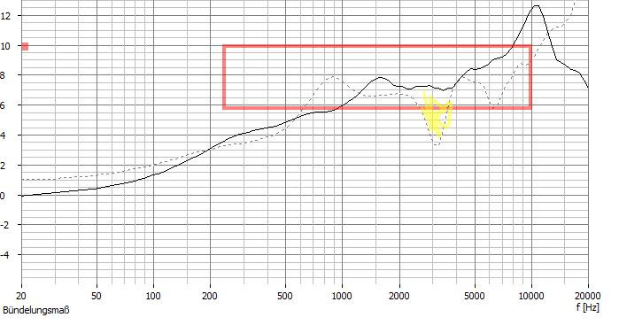 Bewegt man sich nun in dem angegebenen Bereich ohne härtere Ausschläge hat man eine gute tonale Balance zwischen Bündelung und Abstrahlung in den Raum?