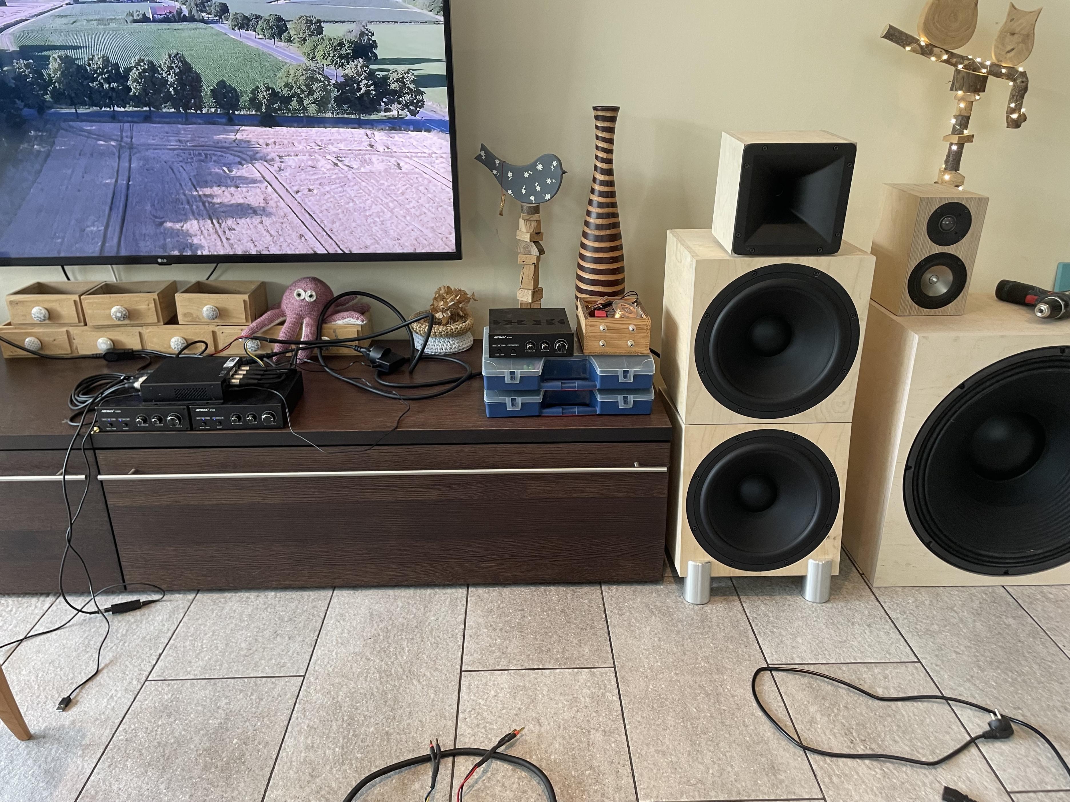 Ich fand schon beim Aufbau und bei den Messungen, dass das HT21 hervorragend entwickelt worden ist, ... Ob ich irgendwann auf einen anderen Treiber wechseln muss, wird sich zeigen, denn dieser BMS machte bei sehr hohen Pegeln einige komische Dinge im Klirr, ... ich habs vor über einem Jahr nicht weiter verfolgt, ... es könnte auch sein, dass man über eine geschickte Weiche den Klirr in den Griff bekommt. Im Hörvergleich hat mir das HT21 sogar besser gefallen als der Beyma AMT, und hatte auch deutlich höheren Kennschalldruck.