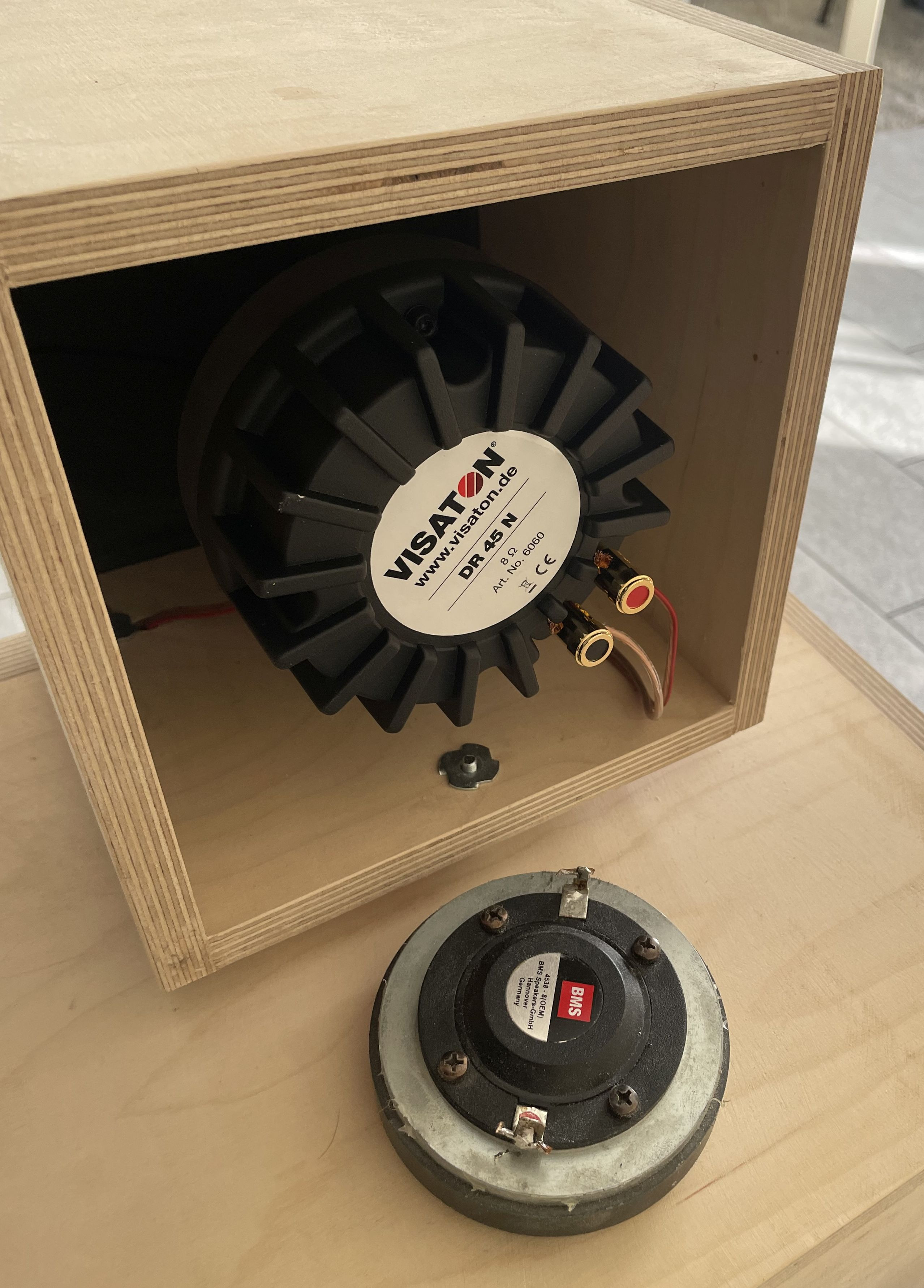 Ich habe einen Sonderpreis abgewartet. Und dann habe ich mir ein Pärchen gegönnt. Die BMS sind sehr gut. Eigentlich war die Änderung akustisch nicht notwendig. Ich wollte nur die dr45n austesten. Und vielleicht eine leicht tiefere Trennung bei 800 hz. Da ist es beim BMS sehr knapp geworden.