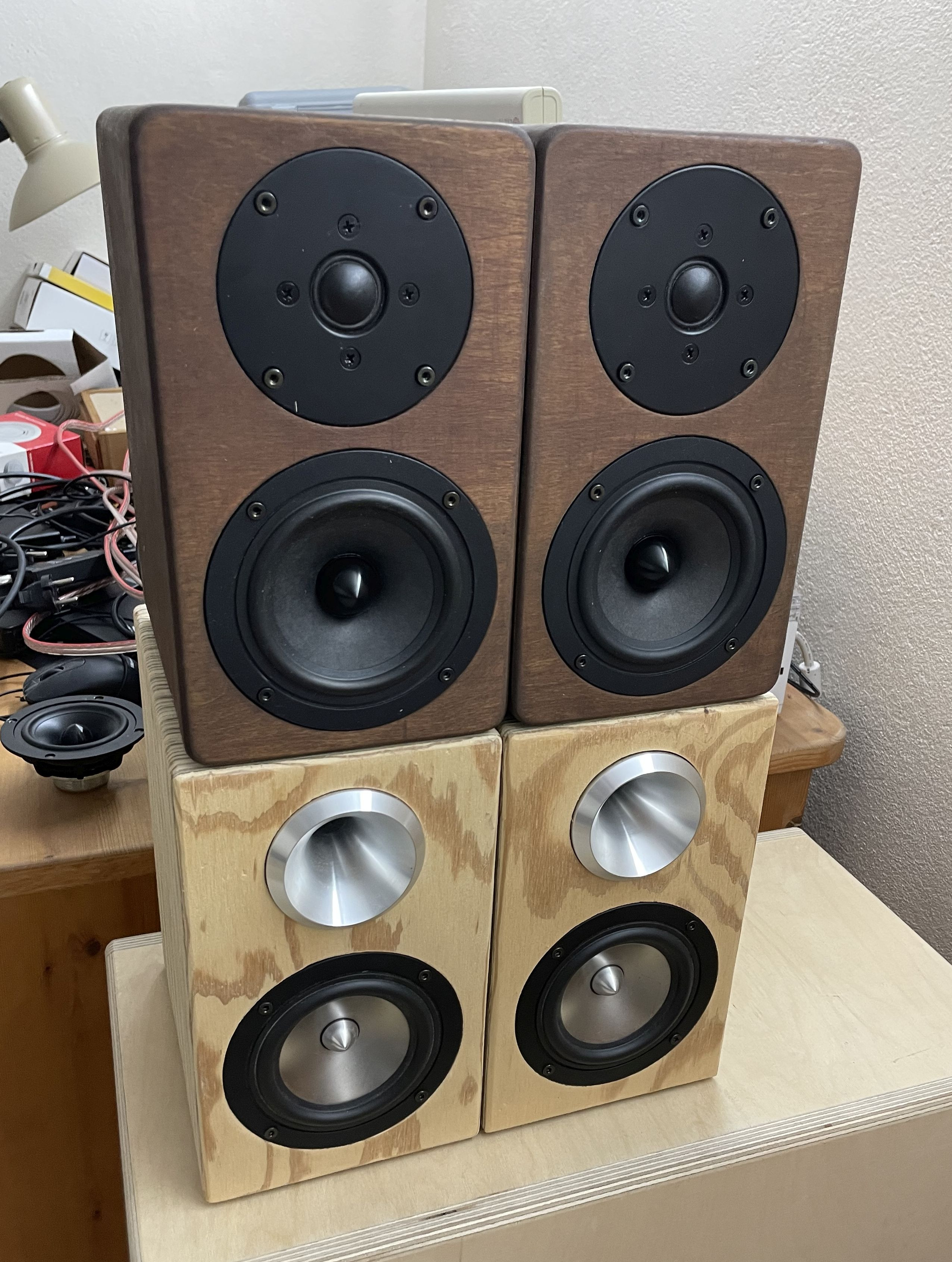 Die letzte große Aktion ist einen neuen Subwoofer zu konzipieren, aktuell spielt der GF250BR Doppelsub, der eher auf Lautstärke getrimmt ist, der langweilt sich bei den kleinen Feiglingen ...