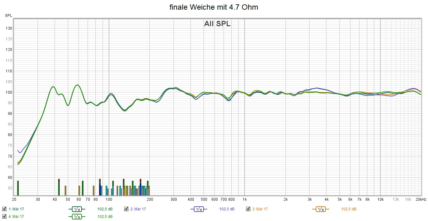 so gefällt mir der Mittel- und Hochton sehr gut, sprich die passive Weiche ist richtig gut geworden ... an die untere Trennung muss ich natürlich nochmals ran.