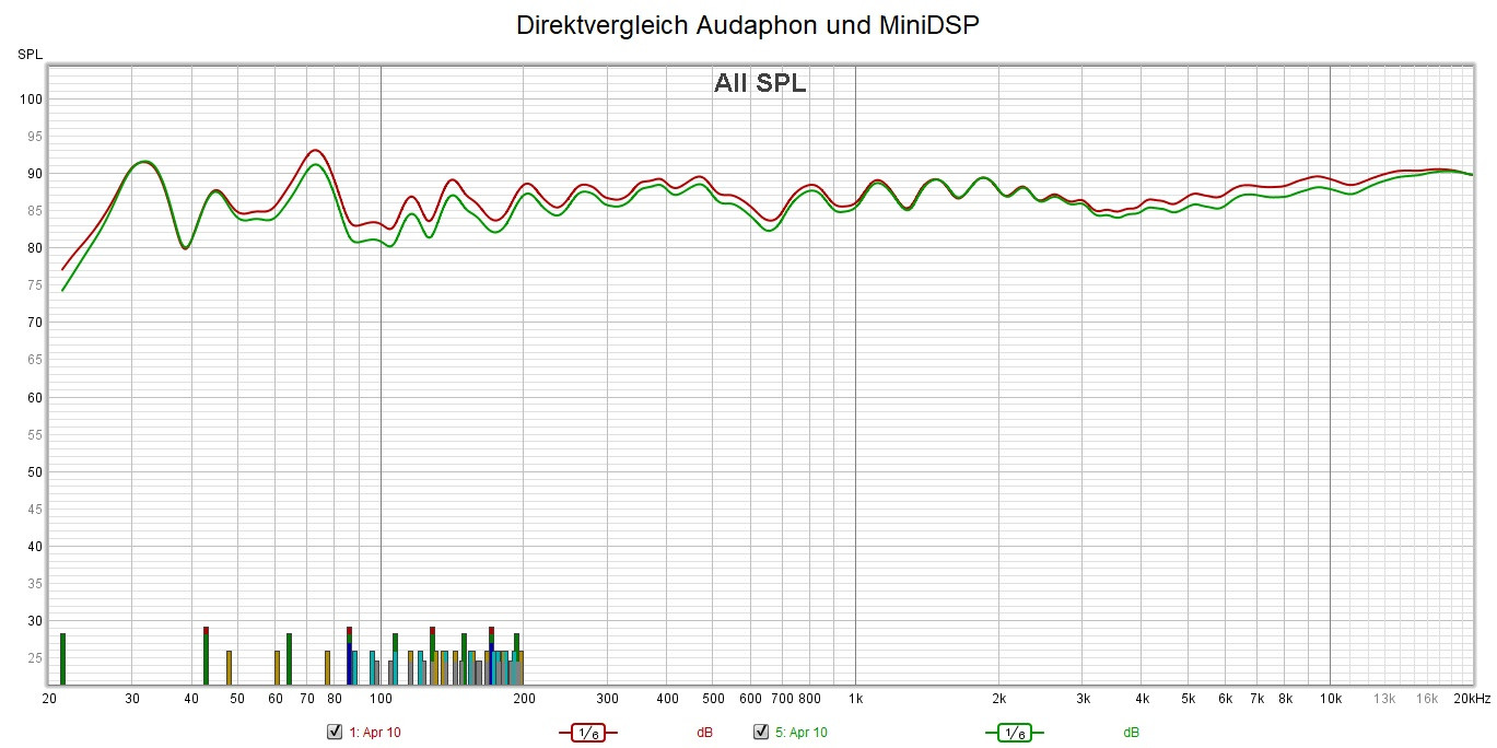 Wie ist am Ende das akustische Ergebnis? Zunächst mal messtechnisch und auch was sagen subjektiv meine Ohren dazu, ... da sollte ich noch erwähnen, dass ich vor Jahren einen ähnlichen Test schonmal gemacht habe und das damalige MiniDSP HD 4X10 rausgefallen ist, weil der Zeitverstz zwischen Fernsehbild und Lautsprecherton absolut nicht gepasst hat, dies wird auch dieses mal wieder ein Kriterium sein.