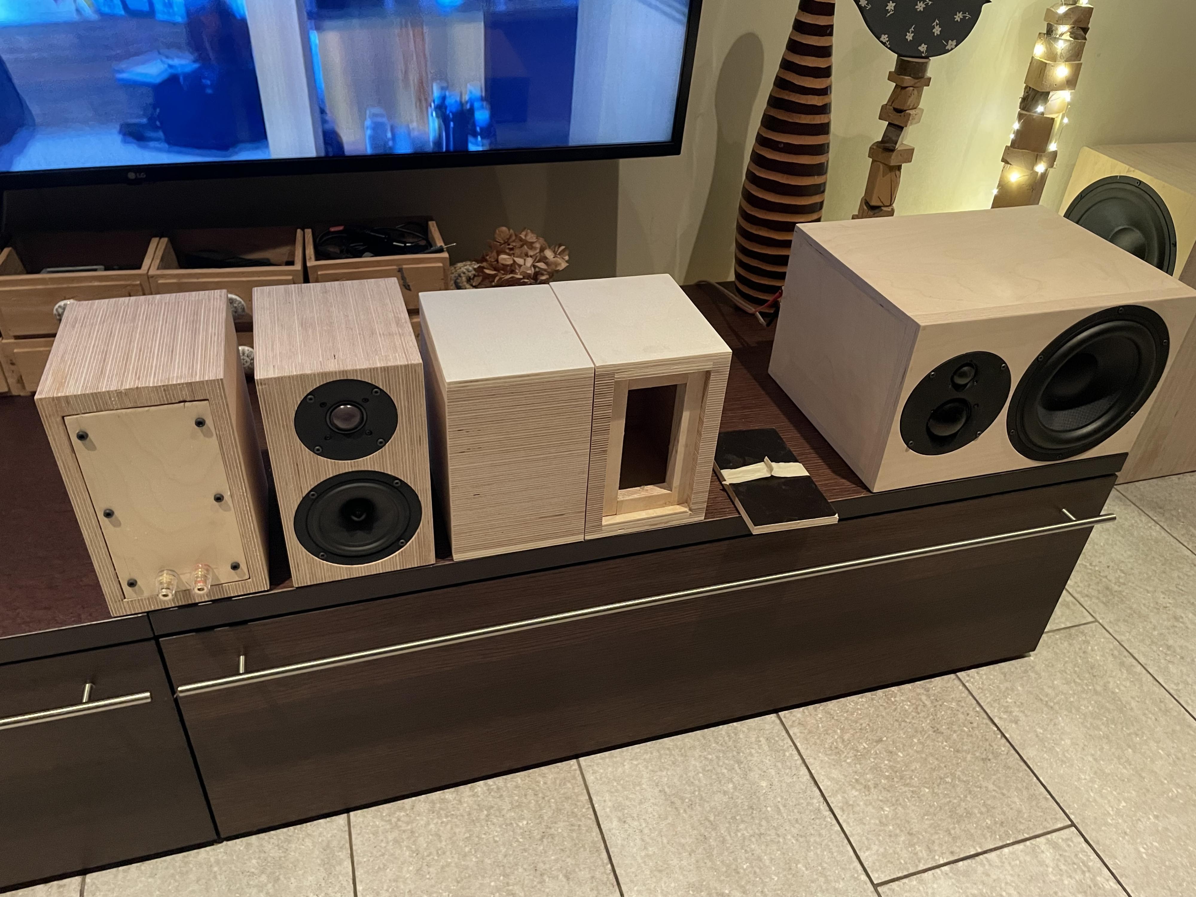 ich habe mir die Zeit genommen, mit dem neuen Hochtöner G25NDWG jede Menge Simulationen durchzuführen. Der Hochtöner ist sehr interessant und ich habe gleich mal vier STK bestellt. Ich habe es schon geschrieben, meine letzten Satellitenboxen waren die Aria B100 mit einem Mitbewerberhochtöner, einem Sica. Den ich wirklich nur dewegen genommen habe da er ein kleines WG hat und auch sehr klein baut. hier im Bild zusammen mit einem WIIM AMP und einem Doppelsub aus zweiGF250 in BR: