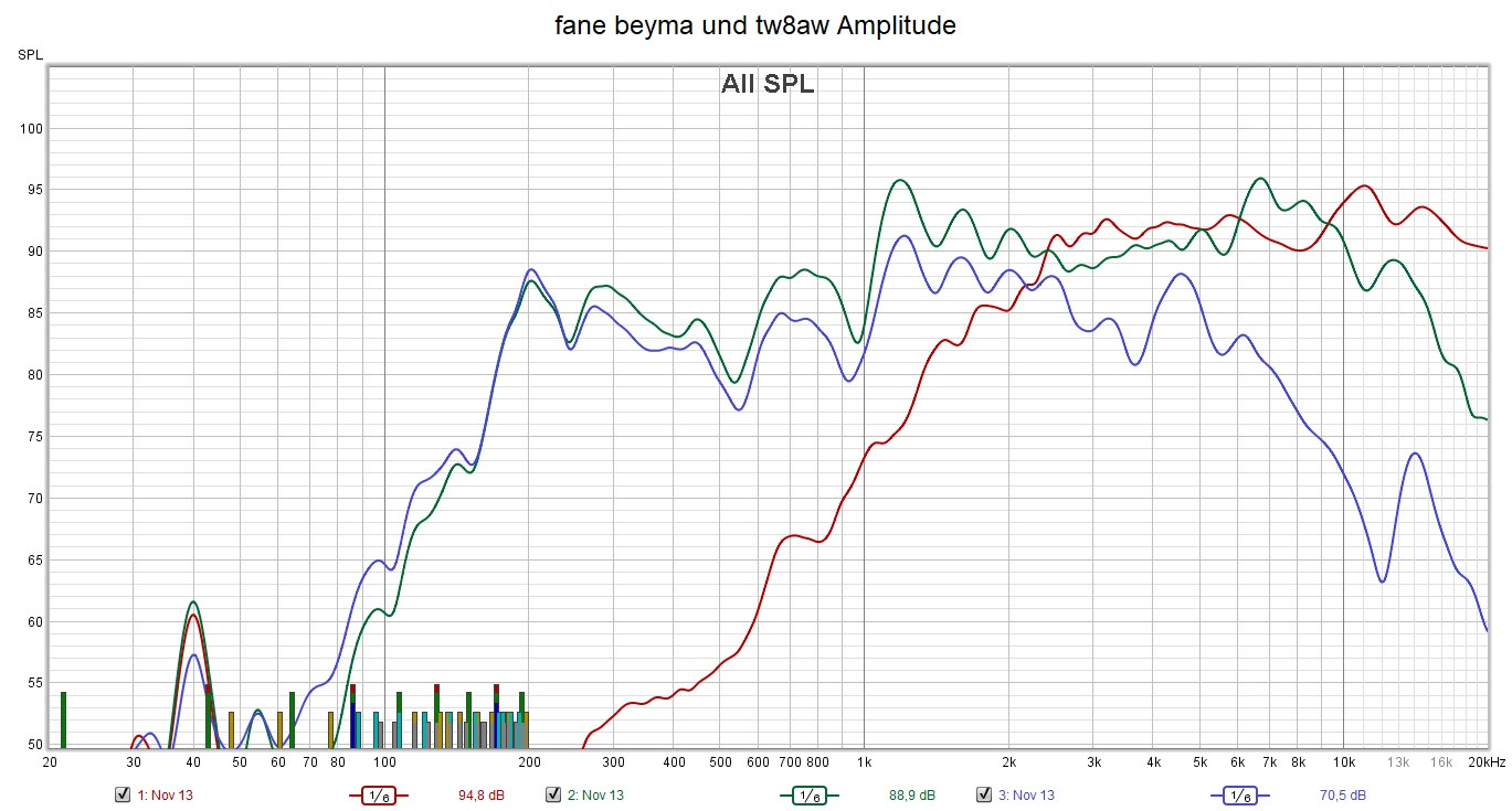 die zwei PA Mitteltöner beyma und fane habe ich im Probegehäuse zusammen mit dem tw8aw gemessen.