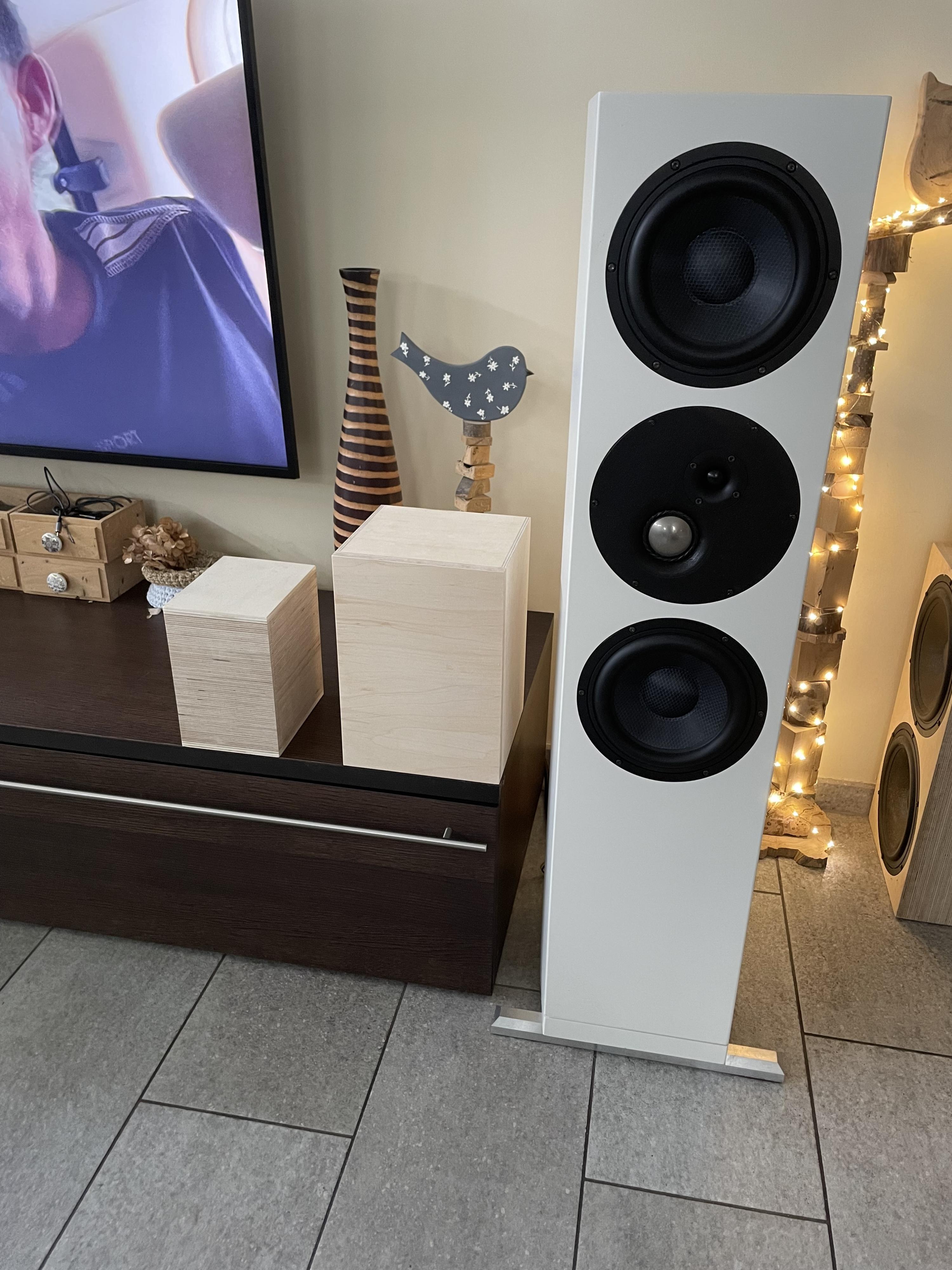 Der Hochtöner ist richtig gut, aber die TMT sind alles andere als Neutral, und für dieses Projekt benötige ich Treiber die etwas weniger aufwändig korrigiert werden können. ps, schlussendlich wird es eine Tricon, 4 oder 5 Zoll Mittelton, hoher Kennschalldruck, und der TW8AW drüber, ... die Trennung sollte so ungefähr bei 2-3 kHz liegen. Die Suche nach dem richtigen Mitteltöner geht weiter.