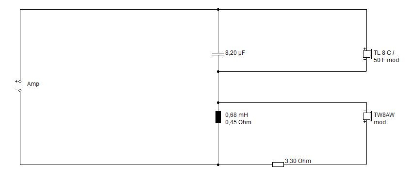 Name: serielle Weiche mit 8,2µF 0,68mH und 3,3 Ohm Schaltplan.JPG
