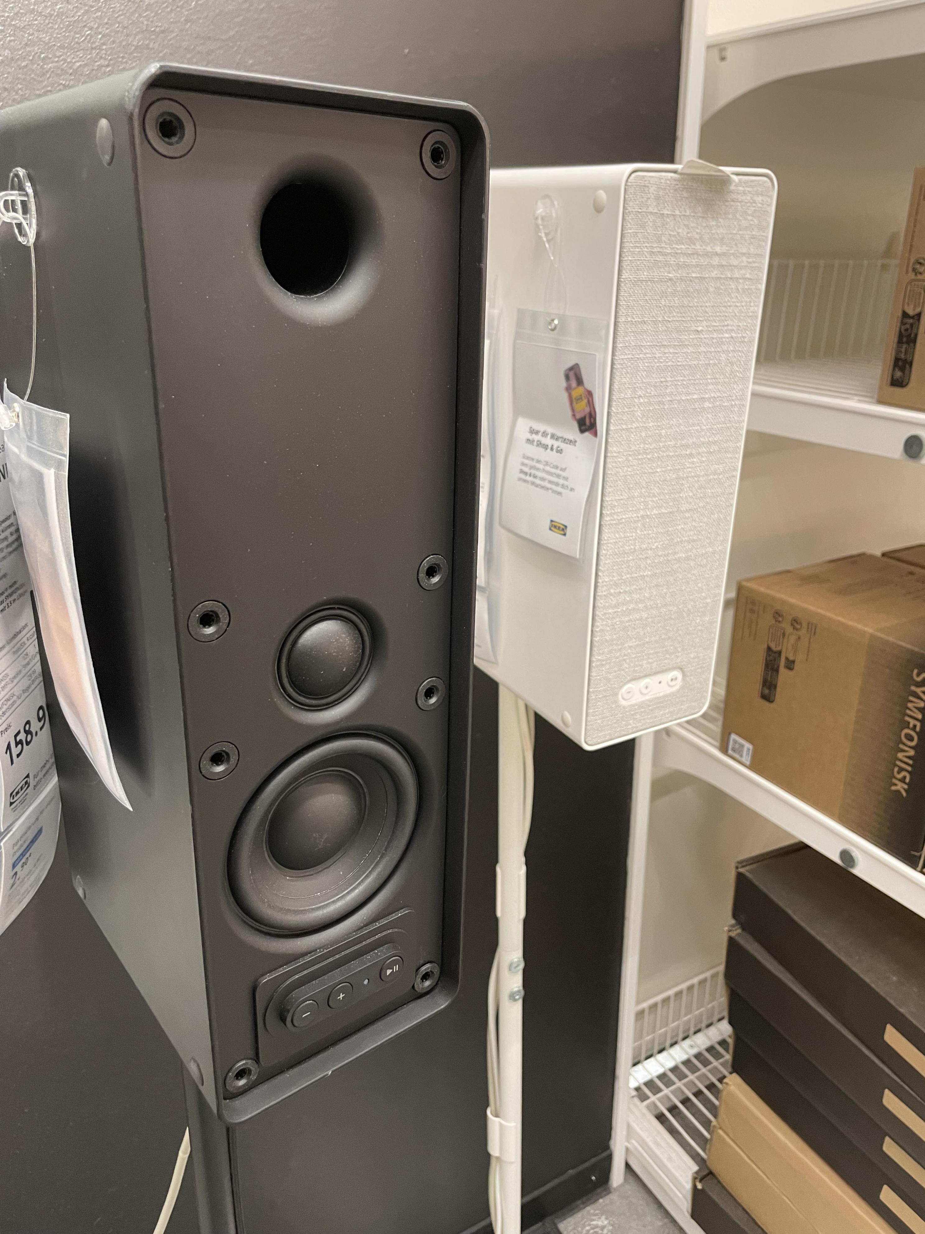 Der Formfaktor dieser Box geht eher in die schmale Richtung, stattdessen ist die Box super hoch. BR, nach vorne, oben.