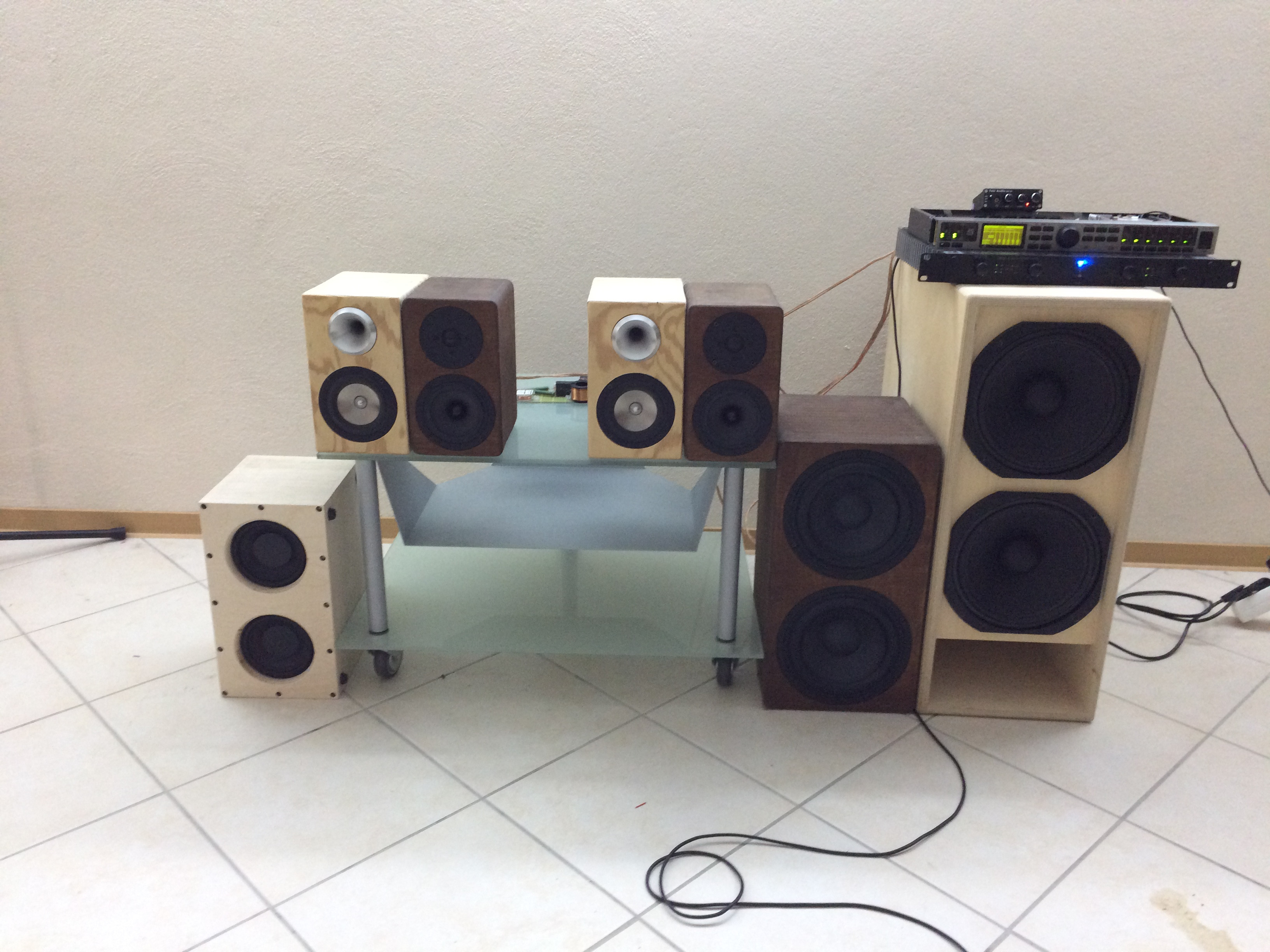Es gibt auch bei der Umsetzung keine Diskussion bei den Treibern, da die B80 und der G25NDWG schon hier liegen, der Sub in der angehängten Simulation steht lediglich als Platzhalter für einen möglichen Sub, der quasi direkt im WIIM AMP gesteuert wird und keine Weiche bekommt. Ein Probegehäuse für zwei GF200 liegen noch im Keller.