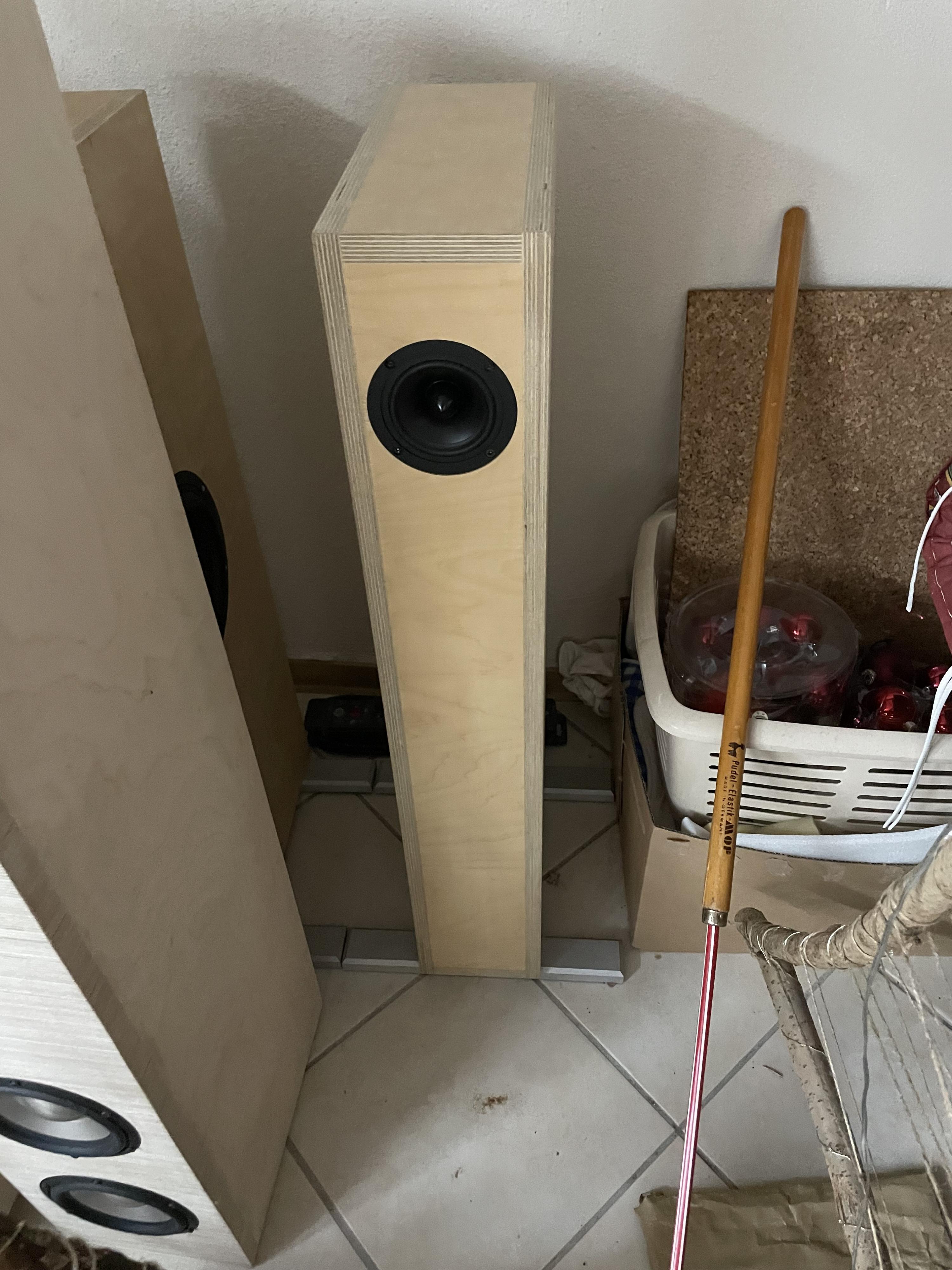 was mich allerdings massiv stört ist der Bereich um 600 Hz, plus minus. Egal was ich anstelle, es wird eher schlimmer als besser. Da muss ich noch drüber schlafen, was der Grund der "Welligkeit" ist. Wenn ich dies nicht in den Griff bekomme, werde ich das Projekt sterben lassen, ... Gerade da passiert das meiste an Sprachinformation, und wegen plus 5 dB im Kennschalldruck, werde ich den sauberen Mittelton nicht opfern. (im direkten Vergleich zur "was braucht man mehr")
