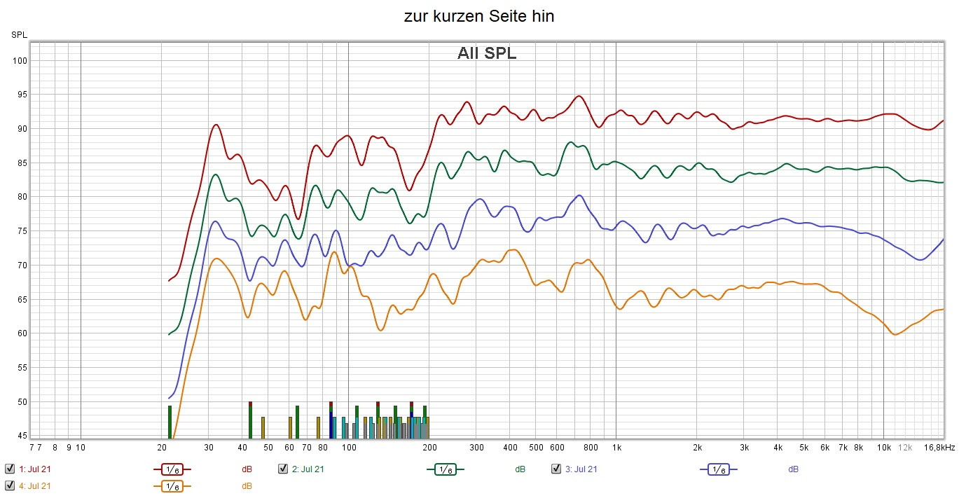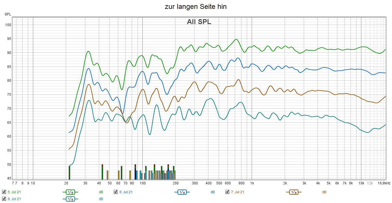 Ich mache mir keine Sorgen um die neutrale Abstimmung im Grund-, Mittel- und Hochton, denn wenn die Ein-Meter-Messung passt, dann ist auch die Entfernungsmessung in Ordnung, dies ist aber im Bass/Tiefbass nicht so.