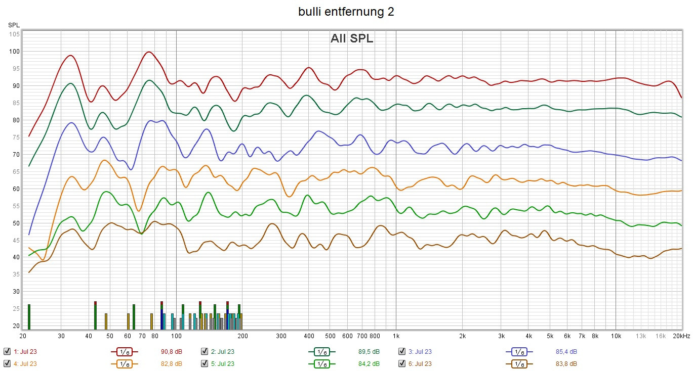 ein kleines Detail: in deinen Messungen ist der Bass bis auf einen Buckel bei 80Hz eigentlich super ausgeglichen (die Spitze ganz unten wird eh nur von Yello angeregt ...). Bei unseren Treffen mit Positionen vor der Sideboard-Vorderkante gibt es immer ein 80Hz-"Loch". Also einen Tick nach vorne und alles ist perfekt ?