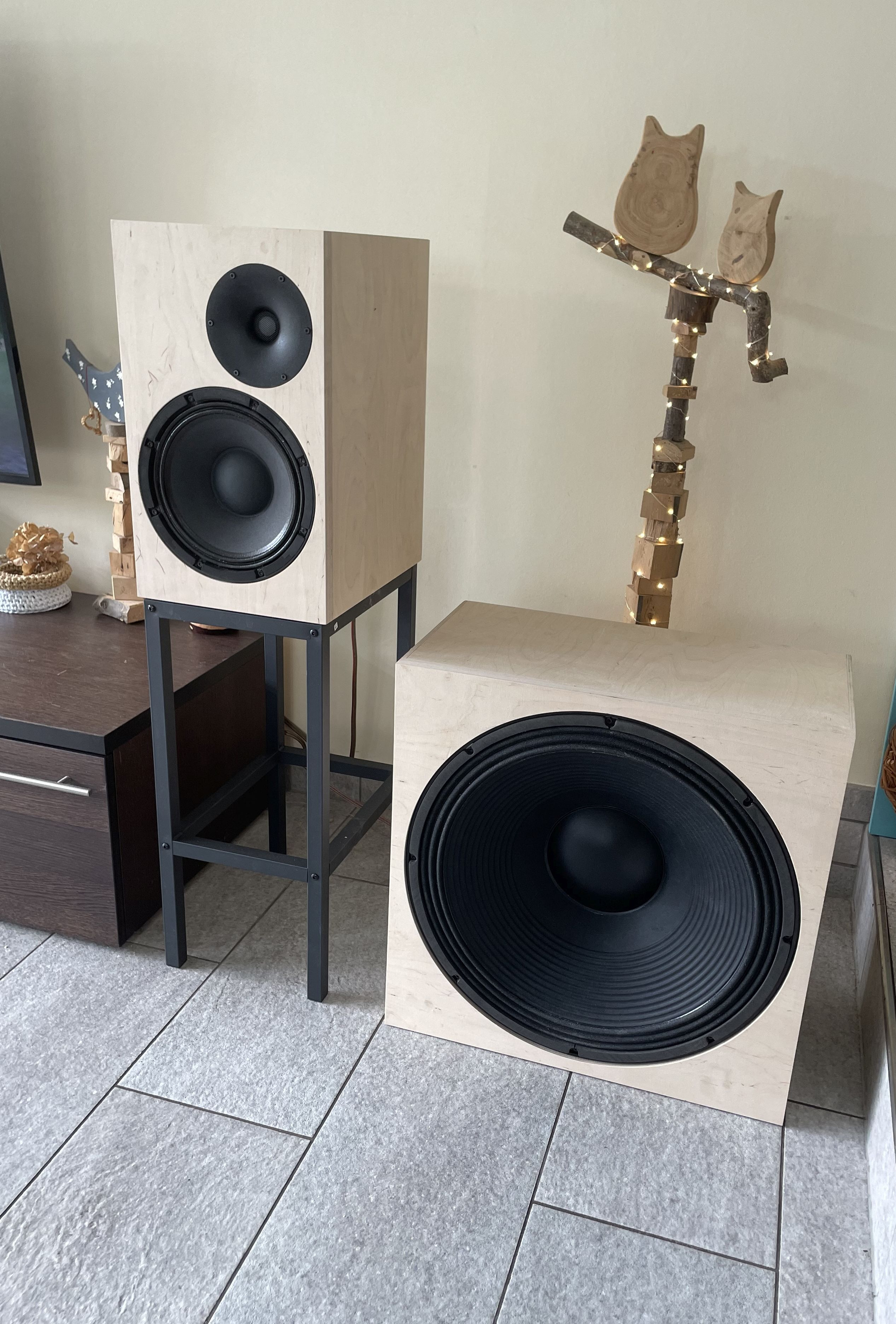 Was die Ständer angeht, die sind nicht die schönsten, aber ist auch eigentlich ziemlich egal, weil es nicht das System ist, was länger im Wohnzimmer bleibt. Die Bullis waren lediglich ein Versuch den PAW25 als Zweiweger zu untersuchen. Das war sehr erfolgreich. Noch besser wird der PAW25 wenn er im Dreiweger den TMT-Bereich übernimmt und den Tiefbass ein anderer Bass übernimmt, ... auch das ist sehr erfolgreich untersucht.