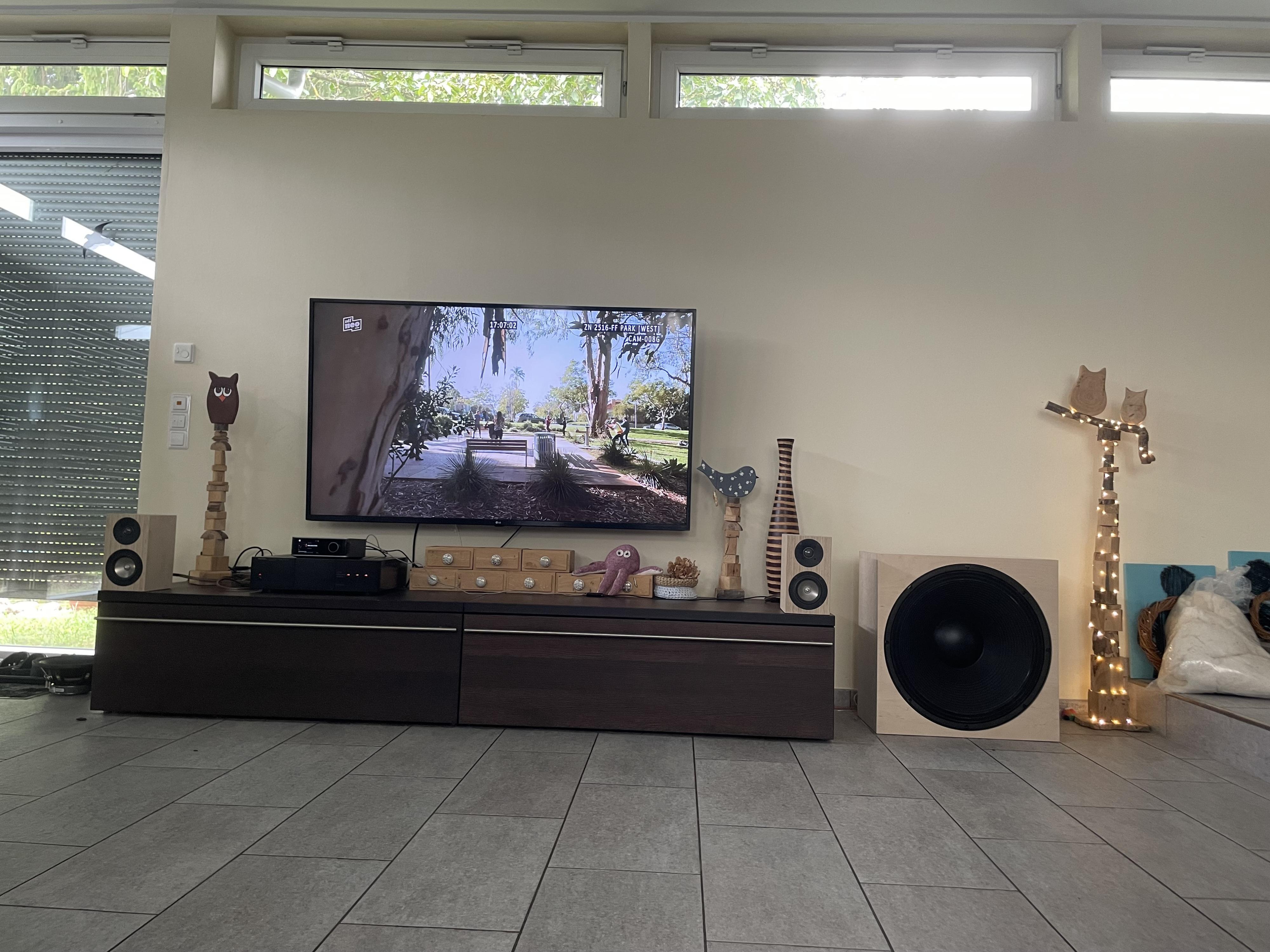 Dadurch, dass ich eben die nächste Tage/Wochen etwas weniger zum Hobby komme, musste ich dieses System in der Zwischenzeit installieren, und auch dieses macht aktuell zB. bei GEORG DUKE massiv Spass. Trennung bei 165 Hz und mit einem Delay von 3ms, eingemessen am WIIM Ultra. Weitere kleine Korrekturen sind im Subbereich bei 90 Hz und 150 Hz. Wo ich uneinig bin, dass im Messchrieb eine breite Anhebung von 1,5 dB bei 500 Hz notwendig sei, diese schalte ich immer wieder komplett aus. Meine Ohren sagen da etwas anderes.