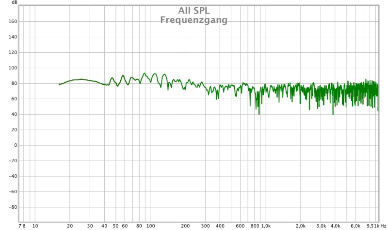 Die Buckel bis 150 Hz im Bassbereich stellen die Raummoden dar. Auslöschungen scheinen keine vorhanden zu sein.